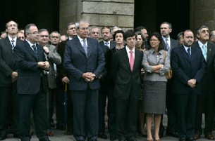 El presidente de la Xunta, Emilio Pérez Touriño, condenó el atentado perpetrado esta madrugada por ETA que causó la muerte del brigada del Ejército Luis Conde de la Cruz, en Santoña (Cantabria), y manifestó que ante este tipo de ataques "non cabe máis que a firmeza e a unidade" de todas as fuerzas políticas y toda la sociedad, frente a quienes quieren dañar la convivencia y la pluralidad. Así mismo, puso de manifiesto un "intenso e belixerante" rechazo a este tipo de violencia por parte de quienes "ansiamos vivir en paz". Touriño realizó esta declaración al inicio del VIII Plenario de la Comunidad de Trabajo Galicia-Norte Portugal, que se celebra en Santiago. Allí expresó la condena más firme y la repulsa más enérgica del pueblo gallego y "a solidariedade o pésame" tanto a la familia del fallecido y de los heridos, como al Ejército, las Fuerzas y Cuerpos de Seguridad del Estado y el Gobierno de Cantabria. Durante su intervención, insistió en la "firmeza" tanto en la condena de este tipo de atentados como "en defensa dos nosos valores, da vida e da dignidad que unen á sociedade española", y aseguró que ETA no tiene cabida en esta sociedad y no conseguirá jamás vencer la democracia, la convivencia en paz y la libertad de los ciudadanos españoles. Por su parte, el presidente de la Comisión de Coordinación y Desarrollo Regional del Norte de Portugal, Carlos Lage, también se sumó a esta condena y mostró "sentimentos compartidos de indignación" ante un atentado que da "unha imaxe moi lonxe da nosa civilización" y de lo que hoy en día desea la sociedad. Concentración en Raxoi Tras su intervención inicial en el VIII Plenario de la Comunidad de Trabajo Galicia-Norte de Portugal, el máximo mandatario gallego se dirigió, acompañado de otras autoridades presentes en el evento, al Pazo de Raxoi (sede del Concello de Santiago) en plena Praza do Obradoiro. Allí, Pérez Touriño encabezó junto al alcalde de Compostela, Xosé Sánchez Bugallo, una concentración silenciosa de repulsa contra el atentado de Santoña que reunió a 200 personas. En el acto simbólico participaron, además del presidente de la comunidad, varios miembros de su Gobierno entre los que se encontraban los conselleiros de Economía, José Ramón Fernández Antonio; de Política Territorial, María José Caride; de Pesca, Carmen Gallego; y de Medio Ambiente, Manuel Vázquez. También estuvieron presentes algunos concejales del consistorio compostelano, entre ellos, la secretaria de Novas Xeracións (NN.XX.) del PPdeG, María Seoane. A la concentración, que tuvo lugar a las 12.00 del mediodía, acudieron además varios diputados del Parlamento gallego, con sus portavoces Carlos Aymerich (BNG), Manuel Ruiz Rivas (PPdeG) e Ismael Rego (PSdeG) al frente, y otros representantes de instituciones gallegas como el Valedor do Pobo, Benigno Lópe<, El BNG, por su parte, expresó en un comunicado su "máis profunda repulsa" por el atentado de ETA y manifestó su solidaridad con la familia y allegados de "esta nova vítima da barbarie terrorista". El Bloque afirma su convicción de que la unidad de los demócratas "será quen de derrotar o terrorismo". Y es que los nacionalistas consideran que ETA "non ten máis porvir que a súa propia disolución", ya que su sola existencia "repugna a conciencia de todos os demócratas". "A violencia irracional debe cesar nunha sociedade que ten ao seu dispor todos os resortes para regular a súa convivencia en liberdade", añade el BNG. Finalmente, la formación frentista recuerda que sobre el futuro de Euskadi "só deben ter a palabra" los vascos y las vascas, y en ningún caso una banda terrorista "que só sabe sementar a destrucción e a morte".