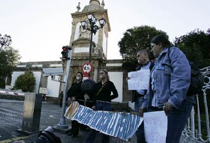 Los padres y la mujer del cabo Jorge Miguel Gago Chao, un ferrolano juzgado meses atrás por un tribunal militar y sobre el que pesa una orden de dos meses en una cárcel perteneciente a las Fuerzas Armadas, se han encadenado en las inmediaciones de la Puerta del Dique, en Ferrol, para solicitar la paralización del expediente que el Ministerio de Defensa tiene abierto a este militar como consecuencia de hacer declaraciones a los medios de comunicación tras el accidente de la Fragata Extremadura en Diciembre de 2005.