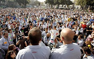 La protesta ha arrancado a las 10.00 horas en la Plaza de Cataluña, donde el presidente del comité de empresa de Nissan en Zona Franca, Javier Donate, ha leído un manifiesto en el que ha expresado el rechazo de la plantilla al ERE y la repulsa por la "desfachatez" que la dirección está teniendo con los trabajadores.