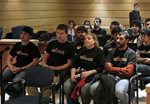 Sin embargo, los propios acusados han reconocido en el juicio que quemaron las fotos por su rechazo a una "institución antidemocrática" y por "solidaridad" con los dos jóvenes -Jaume Roura y Enric Stern (condenados en julio por injurias a la Corona a una multa de 2.700 euros)- que habían sido enjuiciados por quemar fotos de los Reyes una semana antes, el 13 de septiembre. De hecho, todos ellos, lucieron camisetas color negro con un lema impreso en rojo que decía: "Yo también quemo la Corona". Esta prenda fue interpretada como un desafío y poco antes de que comenzara la vista, Honrubia pidió a los acusados que hicieran el favor de ponérsela "de otra manera" porque si no "me veré obligado a expulsarles de la sala".