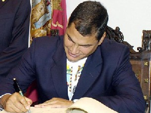El presidente ecuatoriano, Rafael Correa, suscribió la ley minera y criticó en un discurso lo que denominó "izquierdismo infantil" de quienes se oponen a la misma.