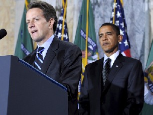 Dos horas después de la aprobación, Geithner prestó su juramento al cargo en una ceremonia encabezada por el presidente Barack Obama, quien resaltó la urgencia de tomar medidas para resolver la crisis económica.