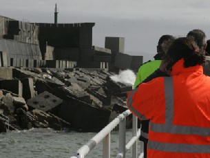 El operario que fue arrastrado por una ola de gran magnitud en el puerto coruñés de Malpica sigue desaparecido ocho horas después de que se lo llevara el mar cuando trabajaba en la ampliación del dique de la dársena.
