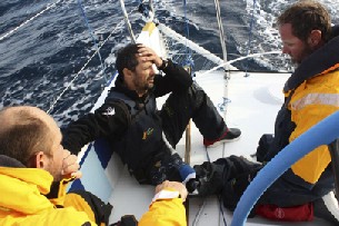 Sobre la 18:30 (hora española) y cuando el 'Azul' se encontraba a unos 200 kilómetros al Norte de las Islas Chatman un fuerte crujido en proa y la caída de la vela de tope de palo al agua indicaba la rotura de una de las piezas del 'stay' (cable que da tensión al mástil desde el extremo inferior de la proa).