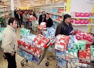 centro, mientras los cajeros trataban de pasar por el escaner la gran cantidad