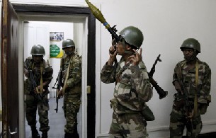 El jefe del Estado no se encontraba en el lugar cuando las tropas respaldadas por dos vehículos blindados entraron en el palacio, donde se registraron varias explosiones y disparos. Los militares abrieron fuego también contra el edificio del Banco Central del Estado, aparentemente defendido por fuerzas leales a Ravalomanana, aunque se desconoce si se produjeron bajas en alguno de los dos bandos, indicaron a Efe testigos presenciales del ataque.