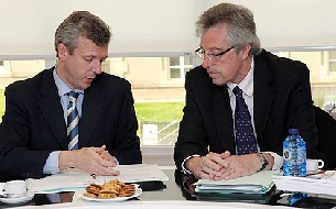 En el encuentro mantenido en la sala de juntas de la Consellería de Presidencia, se analizaron también las necesidades de crear nuevos edificios judiciales, sobre todo en A Coruña, Vigo y Pontevedra. En este momento, no duda de la necesidad de crear las tres dependencias. "A consellería está disposta a facer os trámites e adoptar partidas orzamentarias", explicó Rueda, si bien especificó que existe una "condición" previa, y es que "os concellos poñan terreos a disposición" de la Xunta para iniciar el proceso. "A día de hoxe non os puxeron" en ninguna de las tres urbes, matizó.