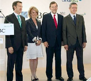 Durante el acto, Feijóo estuvo acompañado por el líder del Partido Popular, Mariano Rajoy, así como por toda la cúpula popular, entre los que se encontraban la presidente de la Comunidad de Madrid, Esperanza Aguirre, el ex presidente de la Xunta de Galicia y ahora senador Manuel Fraga Iribarne y el alcalde de Madrid, Alberto Ruiz Gallardón.