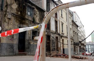 El derrumbamiento de la fachada de un edificio esta mañana en la ciudad herculina se saldó sin daños personales pero causó destrozos en un total de cuatro vehículos estacionados en la zona y también en el tendido elétrico. Según informó el 112, el incidente ocurrió en el número 16 de la calle Falperra, sobre las 10,13 horas.