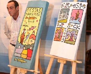 Los carteles de las Fiestas y del Festival del Noroeste han sido realizados por el artista coruñés Jorge Peteiro, que optó por un diseño muy alegre en el que aparece reflejada la Torre de Hércules. El autor estuvo presente eta añana en la presentación y dijo que es ün honor y un placer¨ haber pintado el faro en un año ¨tan significativo¨.