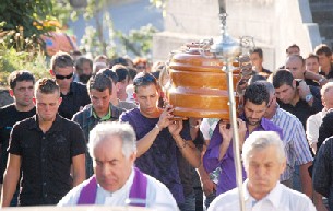 La comitiva fúnebre, que partió desde el tanatorio de Xestosa, se encaminó hacia la iglesia sobre las 19.00 horas. Acompañados por miles de personas, los familiares de la chica recorrieron a pie los escasos 500 metros que el tanatorio del templo.