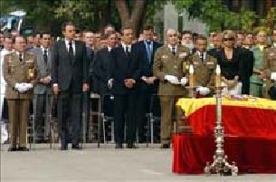 El jefe del Gobierno, José Luis Rodríguez Zapatero, junto con autoridades civiles y la cúpula militar en pleno, rindió este martes un homenaje de despedida al soldado Jorge Arnaldo Hernández, muerto el sábado en un ataque a las tropas españolas en Afganistán, en un funeral marcado por la sobriedad. La ceremonia se celebró en la sede de la Brigada Paracaidista de Alcalá de Henares (Madrid) y durante la misma el presidente del Gobierno consoló a la viuda del fallecido, impuso, a título póstumo, la Cruz al Mérito Militar con distintivo amarillo al militar muerto y entregó a su viuda la bandera, la boina paracaidista y la condecoración. Una hora duró el funeral, oficiado por el arzobispo general castrense, Francisco Pérez González, quien destacó el espíritu paracaidista, en particular, y de los militares, en general, de entrega y total disposición, incluso con "su vida, por una paz que todos deseamos". Del fallecido subrayó su carácter callado, capaz y trabajador, y agradeció a los inmigrantes como él (peruano) que llegan a España y entregan su vida por nuestro país. La ceremonia comenzó con la llegada del presidente del Gobierno, hacia las 10 horas, quien charló durante unos minutos con la viuda, Zaida Vilma Jiménez, quien siguió el funeral entre sollozos junto con dos cuñados de la víctima, uno de ellos también legionario paracaidista de la Bripac. Entre los asistentes a las honras fúnebres se encontraban el ministro de Defensa, José Antonio Alonso, y la cúpula militar en pleno, encabezada por el Jefe del Estado Mayor de la Defensa, general Félix Sanz Roldán, el presidente del PP, Mariano Rajoy, y la presidenta de la Comunidad de Madrid, Esperanza Aguirre. Ante la puerta del Cuartel General del Teniente Coronel Fernando Primo de Rivera, se situó el féretro con los restos mortales del soldado, cubierto con una bandera española y con cuatro candelabros. Hasta allí y al son de la marcha fúnebre, ocho compañeros legionarios paracaidistas llevaron el féretro a hombros y lo depositaron en su túmulo. Una compañía de honores de legionarios paracaidistas con bandera, banda y música se encargó de hacer los honores durante el acto, que también contó con un homenaje a los que dieron su vida por España, que se desarrolló bajo la canción "La muerte no es el final". A continuación, la compañía de honores recitó al unísono la oración paracaidista, interpretó el himno de despedida y soltó la correspondiente carga de fusilería. Tras cantarse el himno de infantería, Zapatero entregó la bandera, la boina paracaidista y la condecoración a la viuda del soldado fallecido. Éste constituyó uno de los momentos más emotivos de la ceremonia, a la que asistieron también diputados del PP y del PSOE, además de los jefes de Estado Mayor del Ejército, general Carlos Villar, de la Armada, almirante Sebastián Zaragoza, y del Aire, Francisco José García de la Vega. Por expreso deseo de su familia el cadáver de Jorge Arnaldo Hernández, que llegó el lunes a la base aérea de Torrejón de Ardoz (Madrid), será enterrado en su país, Perú. Está previsto que sus restos salgan este martes a bordo de un avión Boeing de las Fuerzas Aéreas, dispuesto por el Ministerio de Defensa. Los restos mortales de Jorge Arnaldo Hernández Seminario, peruano de 26 años, casado, llegaron anoche a la base aérea de Torrejón de Ardoz (Madrid), junto con los cuatro heridos en un atentado premeditado contra un convoy del contingente español en Afganistán que tuvo lugar el sábado en la zona de Bakua, en la provincia de Farah, al oeste del país.