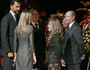 Acompañados por la ministra de Cultura, Ángeles González-Sinde, los Príncipes han sido recibidos por el director general del INAEM, Félix Palomero, y el director del CDN, Gerardo Vera.
