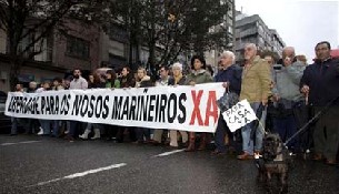 Miles de personas se manifestaron en Vigo para pedir la liberación de los marineros retenidos desde hace 37 días en el atunero vasco "Alakrana" en una marcha que se prolongó por espacio de una hora. La marcha, que partió con una pertinaz lluvia de la Plaza de España, recorrió la Gran Vía hasta la Plaza de América, bajo el lema "Liberad a nuestros marineros ya" y carteles con mensajes como "Chacón Solución ya", "Nuestros marineros en casa ya" o "Garzón a Somalia".