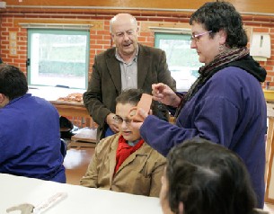 "Venimos a estos centros de muy buena gana, para poder hablar de las caras y de las voces de los usuarios finales de nuestras ayudas. No es una relación de despacho, es una perspectiva directa que nos convence de que estamos en el buen camino", explica orgulloso Manuel Aguilar. Sin abandonar la visión empresarial, Aguilar se interesa en el taller de cestería por la importación de médula llegada de Barcelona. "Podíamos hacerla aquí", apunta entre risas. A su alrededor se sientan unos diez jóvenes, que se ponen manos a la obra en la construcción de sus cestas mientras explican al responsable de Caixa Galicia cómo trabajan. Son solo unas pocas de las 32.000 personas con discapacidad que se beneficiarán del nuevo reparto de ayudas sociales de la entidad bancaria, que dejará hasta 344.000 euros en proyectos que trabajan con estas personas.