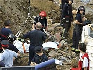 Cinco trabajadores de la construcción murieron y otro resultó gravemente herido tras derrumbarse el jueves un muro de contención en Barcelona, informaron el Ayuntamiento de la capital catalana y la Generalitat. Los seis obreros trabajaban en la construcción de un edificio de oficinas en la calle Almogávares, en el distrito de Pueblo Nuevo, cuando se produjo el derrumbe. Los servicios de emergencia localizaron primero a dos fallecidos, uno de origen español y otro paquistaní, y posteriormente rescataron otros tres cadáveres, que estuvieron varias horas atrapados bajo los escombros, confirmó el Ayuntamiento de Barcelona. "Lamentamos tener que comunicar que las personas que han sido encontradas en estos momentos por los Bomberos son personas que han fallecido, están en proceso de identificación", dijo la tercera teniente de alcalde del Ayuntamiento de Barcelona, Inma Mayol, a los periodistas. El herido fue trasladado al Hospital del Mar con politraumatismos y su estado era grave aunque no se temía por su vida. "Se trata de una excavación que se ha realizado en las proximidades de una antigua construcción, que probablemente había sido un muro de contención", dijo la consejera de Interior de la Generalitat catalana, Montserrat Tura, que acudió al lugar del accidente. Tura recalcó que no se trata del desprendimiento de una obra moderna, aunque se estén realizando obras en las proximidades actualmente.