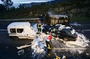 La furgoneta que se vio implicada en el accidente comenzó a arder y el incendio tuvo que ser sofocado por los servicios de emergencias desplazados hasta el lugar. Por el momento, hay constancia de que otra de las personas implicadas en el siniestro resultó herida leve, aunque es posible que el número de personas que requirieron asistencia sanitaria sea mayor.