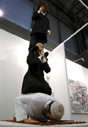 reflexión sobre la religión y en ella Merino ha situado a un árabe rezando
