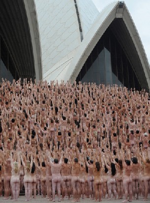 Unas 5.200 personas posaron hoy desnudas sobre las escaleras de la espectacular Casa de la Opera de Sídney en Australia para el fotógrafo estadounidense Michael Tunick, informaron los medios locales.