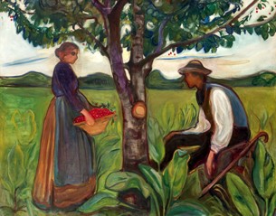 "Fertilidad", obra de gran tamaño, es una de las mayores pintadas por Munch en los primeros años de su carrera. Representa a una pareja de jóvenes vestidos con trajes de campesinos en medio de un campo y junto a un cerezo.