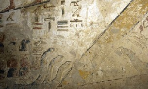 Dentro del pasillo, los arqueólogos encontraron piezas de cerámica que datan de la dinastía XVIII (1569-1315 a.C.), escaleras decoradas con inscripciones y la maqueta de un barco.