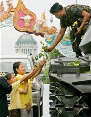 La cúpula militar que asestó un golpe de Estado contra el primer ministro de Tailandia, Thaksin Shinawatra, anunció que un gobierno interino permanecerá un año en el poder y que convocará elecciones en octubre de 2007. En sus primeras declaraciones a la prensa, el general Sondhi Boonyaratglin, jefe del Ejército y líder del golpe, señaló también que llevarán ante la Justicia a aquellos que hayan cometido ilegalidades durante el gobierno de Shinawatra. Los golpistas han acusado a Shinawatra de corrupción y de deslealtad a la Corona. El general Sondhi dijo también en conferencia de prensa que en un plazo de dos semanas será nombrado un gobierno interino, que en principio, puede estar encabezado por Pridiyathorn Devakula, gobernador del Banco Nacional de Tailandia Antes, en una reunión con diplomáticos extranjeros, Sondhi reiteró que la Constitución de 1997 será enmendada con el propósito de abrir el cauce a una reforma política que culminará con la celebración de elecciones legislativas. "Hemos hecho esto (el golpe) a petición de muchos sectores. En este país existe el deseo de desarrollar un sistema democrático", explicó Sondhi. El líder golpista afirmó, en respuesta a una pregunta formulada por un diplomático, que el depuesto primer ministro y los miembros de su Gabinete pueden regresar a Tailandia, aunque advirtió serán sometidos a una investigación para conocer si cometieron delitos. Shinawatra llegó a Londres acompañado de una reducida comitiva, que incluye al ex viceprimer ministro Surakiart Sathirathai, candidato tailandés a la secretaria general de la ONU.