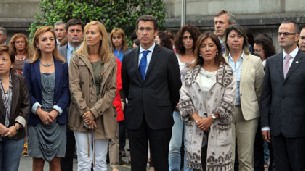 En torno a medio centenar de personas, con el presidente de la Xunta, Alberto Núñez Feijóo, a la cabeza, se concentraron este mediodía ante la sede central de la Xunta en Santiago para mostrar su repulsa ante el asesinato.