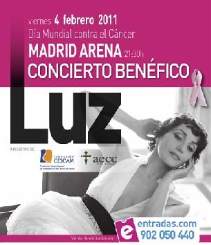 La cantante Luz Casal ha anunciado este jueves en su página web su regreso a los escenarios en una actuación muy simbólica para ella: será el 4 de febrero de 2011 en un concierto benéfico en el Madrid Arena en el Día Mundial contra el Cáncer. Actualmente la artista gallega está a punto de terminar los tratamientos para combatir el cáncer de mama de su seno izquierdo. Este cáncer le obligó a cancelar en mayo de este año su gira 'La Pasión', después de haber superado un tumor en 2007.