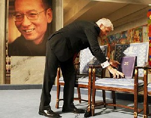 Que nadie venga a recoger el premio refleja que éste era "necesario y apropiado", resaltó en su discurso el presidente del Comité Nobel Noruego, Thorbjoern Jagland, quien depositó el diploma y la medalla del premio en el sillón vacío de Liu.