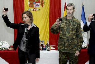 Tras afirmar que esta misión es "especialmente compleja", Chacón trasladó a los militares el "afecto y gratitud" del Rey, del presidente del Gobierno y de los 46 millones de españoles. Dejó claro a los militares que su "trabajo y sacrificio" aporta estabilidad al mundo y también seguridad a todos los españoles.