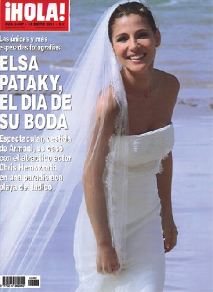 La mujer más deseada de España ha abandonado la soltería, y la revista ¡Hola! da esta semana prueba gráfica de ello. Un amplio reportaje muestra a Elsa Pataky vestida de novia en el día de su boda con Chris Hemsworth. Tras un año de relación, la actriz española, de 34 años, y el actor australiano, de 27, se dieron el "sí, quiero" el fin de semana de Navidad en las exóticas playas del Índico. Eso sí, ni una fotografía del novio.