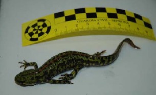 Este individuo ofrecía para su venta dos ejemplares de ‘triturus marmoratus’, conocido como tritón jaspeado, una especie autóctona de Galicia que se encuentra catalogada como de interés especial en el real decreto 439/1990 que regula el catálogo nacional de especies amenazadas.