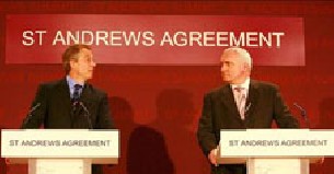 Según Blair, si las formaciones cumplen con el plan establecido, bautizado como el "acuerdo de Saint Andrews", podría formarse un Gobierno de poder compartido entre católicos y protestantes para el próximo 26 de marzo. "Creo que hemos hallado una vía de progreso", aseguró el "premier" británico en una rueda de prensa celebrada en Saint Andrews (Escocia), donde los últimos tres días ha mantenido, junto a su colega irlandés, Bertie Ahern, una intensa ronda de conversaciones de paz con los partidos del Ulster.