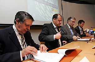 Responsables de la Consellería de Innovación e Industria, el Centro Tecnolóxico do Mar y la empresa Pipo Systems firmaron en Santiago un convenio para promover la investigación y desarrollo de un sistema de aprovechamiento energético de las olas del mar. A finales de 2007 y principios de 2008 podría estar ubicado el primer prototipo en algún punto del litoral gallego. Las primeras estimaciones de Pipo Systems muestran que, como aseguró su director gerente, Abel Cucurella, la energía que se podría generar es "de un potencial incalculable", al cuadriplicar la cantidad producida en una hora nominal de viento recogida por un aerogenerador eólico. El sistema, denominado ?Pisys?, capta las tres formas de energía que transmite una ola de mar a través de una triple boya de 5,5 metros de radio que cuenta con tres sensores, uno situado en la superficie y otros dos bajo el agua. Así, cada boya recoge la energía del empuje, el diferencial de presiones y la energía cinética -el movimiento ascendente y descendente del agua. Estas boyas pueden llegar a generar más de 280 kilovatios. Al instalarse en plataformas modulares que acogerán entre 6 y 12 unidades Cucurella señala que "se consiguen producciones energéticas espectaculares". Un grupo de diez boyas ubicado en un punto de la costa atlántica o cantábrica alcanzaría una potencia de 2.827 kilovatios y una energía de 9,3 gigavatios por hora al año. Prototipos En la práctica, estas estimaciones deben verificarse con la elaboración de modelos a escala que estarán disponibles entre finales de año y la primera quincena del próximo según afirmó el director gerente de Pipo Systems. La siguiente fase se basará en la experimentación con los modelos en un canal de recreación de olas de la Escuela de Ingeniería de Catalunya. El prototipo a escala real se construirá y probará en Galicia, como recalcó el director xeral de I+D, Salustiano Mato, motivo por el que la empresa de Cucurella trabaja en coordinación con un equipo pluridisciplinar integrado por expertos del Centro Tecnolóxico do Mar e investigadores en oceanografía, física, geología, bioquímica y medio ambiente de las universidades de Vigo (Uvigo) y A Coruña (UDC). El objetivo estratégico de este proyecto es disponer de tecnología propia y avanzada, así como el desarrollo de infraestructuras de experimentación singular en Galicia. Además de aprovechar el potencial energético que, en materia de olas, sitúa a la comunidad gallego en la primera posición del conjunto del Estado y entre las más destadas del mundo, como apuntó Abel Cucurella. Energías renovables El conselleiro de Innovación e Industria, Fernando Blanco, destacó durante la presentación de este convenio que el Plan Galego de I+D+i tiene como principal objetivo hacer que las energías renovables aporten el 90% de la electricidad. Según indicó, este nuevo sistema que capta la energía de las olas del mar puede dotar de un "mix enerxético máis dinámico e global" a la comunidad gallega. Esta fuente de energía complementaría, además, a otras como la eólica, cuyas fluctuaciones derivadas de la falta de viento quedarían paliadas. A este proyecto, la Consellería destinará 500.000 euros de forma que quedará cubierta la mitad de su coste total, de 1.015.434 euros. Cuando se finalice el proceso de elaboración, prueba y verificación, el modo de canalizar la energía generada por cada una de las plataformas implicaría un importante gasto en su conducción. Se necesitarán cables especiales protegidos por una doble capa de tubos que eviten cualquier tipo de perturbación, como explicó Abel Cucurella. No obstante, este gasto se amortizaría con la instalación de varias plataformas.