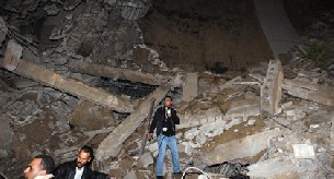 internacional destruyeron un edificio situado dentro del palacio de Muamar al