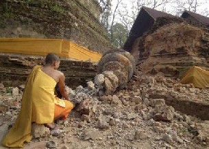 En este último pueblo, situado cerca del epicentro, se han contabilizado 20 víctimas mortales y 45 edificios derrumbados por por el seísmo, incluidos los monasterios de Fonekha, Naamkham y Parhlaing.
