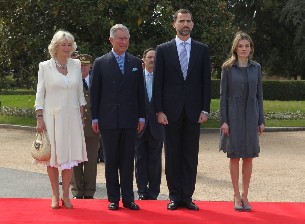 Don Felipe y Doña Letizia han presidido el recibimiento oficial en el Palacio de El Pardo -residencia de los invitados durante su estancia en Madrid- y ofrecerán por la noche una cena de gala en el Palacio Real en honor del Príncipe Carlos y su esposa, que participarán en más de una veintena de actos durante su estancia en España.