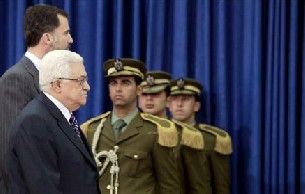 Acompañados por la ministra española de Asuntos Exteriores, Trinidad Jiménez, los Príncipes llegaron a Ramala procedentes de Jerusalén en su primera visita a los Territorios Palestinos y, acompañados por Abás, accedieron directamente al interior de la sede presidencial de la ANP para asistir a la ceremonia de bienvenida, que no pudo celebrarse en el exterior ante la amenaza de lluvia.