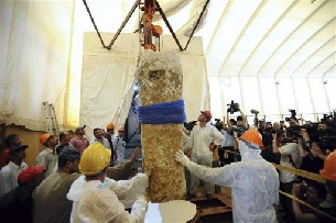 Allí contemplaron de cerca la extracción del primer bloque de piedra que cubre la barca, lo que les permitió ver directamente y por primera vez en más de cuatro mil años una parte de la embarcación.