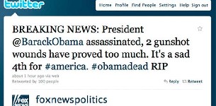 Unos piratas informáticos han causado un gran revuelo al publicar la falsa noticia del asesinato del presidente de EEUU, Barack Obama, en la cuenta de Twitter de la sección de política del canal Fox News, precisamente el día de la festividad del 4 de julio.