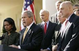 El presidente de EEUU, George W. Bush, afirmó este jueves que está abierto a sugerencias sobre la política a seguir en Irak, tras la victoria demócrata en las elecciones legislativas del martes. Bush se reunió con su Gabinete para analizar la situación, después de unos comicios que han dejado la mayoría de la Cámara Baja en manos de los demócratas, mientras que está a punto de confirmarse oficialmente su dominio también en el Senado. Los demócratas basaron buena parte de su campaña electoral en las críticas a la política del Gobierno hacia Irak, donde permanecen desplegados cerca de 140.000 soldados de EEUU. Desde el comienzo de la guerra han muerto en torno a 2.800 militares de esta nacionalidad en el país árabe. Según explicó el presidente, junto a su Gabinete, en una breve declaración en los jardines de la Casa Blanca, "no importa de qué partido sea uno, todos tenemos la responsabilidad de garantizar que las tropas cuentan con los recursos y el apoyo que necesitan para imponerse" en Irak. Por tanto, aseguró que está "abierto a cualquier idea o sugerencia que nos ayude a lograr nuestras metas de derrotar a los terroristas y garantizar el éxito del Gobierno democrático en Irak". Bush, que tras el triunfo demócrata ha expresado su disposición a colaborar con la nueva mayoría, recordó que hoy almorzará con los líderes demócratas en el Senado y la Cámara de Representantes, con los que analizará el camino a seguir tras los comicios. Además de Irak, repasarán la agenda legislativa que afronta el nuevo Congreso. Bush apuntó, entre las prioridades que va a plantear, la aprobación de la Ley de Vigilancia a los Terroristas y una nueva ley sobre energía.