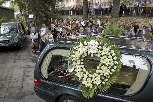 Los cuerpos de los menores llegaron al cementerio de San Amaro, a escasos metros de la vivienda donde perecieron los gemelos, pasados unos minutos de las 13:00 horas.