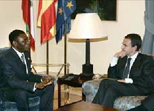 El presidente de Guinea Ecuatorial, Teodoro Obiang, se comprometió ante el presidente del Gobierno, José Luis Rodríguez Zapatero, a liberar a los presos políticos de su país, según informaron fuentes del Ejecutivo. Zapatero se reunió en el Palacio de la Moncloa con Obiang, a quien insistió en la necesidad de que el Gobierno de Guinea Ecuatorial realice "gestos importantes" en el proceso de democratización y de respeto de los Derechos Humanos, y ha señalado que "la mejor ocasión" para hacerlo serían las próximas elecciones. Obiang se comprometió además a promover una mayor distribución de la renta e invitó a los parlamentarios españoles a que viajen a su país para comprobar los avances. Ayuda a Guinea Ecuatorial El ministro de Asuntos Exteriores, Miguel Angel Moratinos, aseguró que es la obligación de España "ayudar, acompañar e incentivar" a Guinea Ecuatorial en sus reformas, "les guste o no a ciertos sectores" de la sociedad española. Moratinos se expresó así en conferencia de prensa junto a su homólogo guineano, Pastor Micha, con quien almorzó con motivo de la visita oficial a España del presidente de Guinea Ecuatorial, Teodoro Obiang, la primera en quince años. Por su parte, Micha aseguró que "Obiang no puede no venir a España; si Mahoma no va a la montaña, la montaña irá a Mahoma", y añadió que también se trata de "romper ese hielo que muchos quieren crear en nuestra relación". Micha aseguró además que quienes critican a su país lo hacen por desconocimiento y que es por ello por lo que el presidente Obiang ha decidido invitar a un grupo de diputados y senadores a visitar Guinea para que puedan comprobar los avances que se están produciendo en el país. En concreto, Micha subrayó que, comparado con los demás países de su entorno, Guinea Ecuatorial obtendría un "sobresaliente" en materia de respeto a los Derechos Humanos. En su intervención inicial, Moratinos explicó que los objetivos de la política exterior de España son la defensa de los valores y principios democráticos -para lo que se "acompañan e incentivan" los cambios- y la defensa de los intereses de España "por medio de la presencia y no de la ausencia". "Es la única manera de construir y reforzar esta relación histórica: hablar, encontrarse, construir juntos y mejorar. ¿Hay alguna alternativa?", planteó Moratinos, quien consideró que no se logrará nada a base de "desestabilizar un país o un régimen". Además, señaló que, en un momento en que se impulsa la relación de España con Africa, "no tiene sentido ignorar al único país africano de habla hispana en ese continente". Por todo ello, Moratinos valoró que este viaje de Obiang será recordado como un "punto de inflexión" tanto de las relaciones bilaterales como de la evolución de Guinea ecuatorial. En respuesta, Micha explicó que la visita "no es para pedir nada, sino para consolidar una relación entre dos países hermanos" y señaló que "no tiene sentido" que en un momento en que su país recibe el 60 por ciento de la inversión extranjera en todo Africa, "no haya ni una empresa española en Guinea". Así pues, y "porque Obiang se siente parte de España", ha venido a explicar a los empresarios que "no es lógico" que no estén presentes en su país. Preguntado por la cancelación de la visita de Obiang al Congreso de los Diputados, Moratinos aseguró que se ha tratado de un simple "cambio de programa" y, como prueba de que no se ha debido a un rechazo de los partidos, ha señalado que el presidente guineano se ha entrevistado con PSOE, PP y CC, y que CiU ha expresado su interés por "una posible relación".