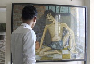 Sus grandes cuadros, que todavía cuelgan de las paredes del S-21, la prisión en Phnom Penh donde estuvo recluido un año, muestran escenas lúgubres de hombres azotados, oscuros interrogatorios y madres que luchan por que no les arranquen a sus hijos de entre sus brazos.