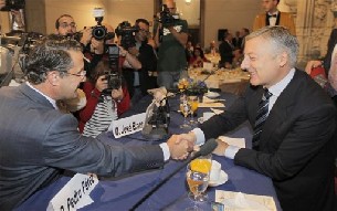 Blanco ha participado hoy en la inauguración del curso 2011-2012 del Fórum Europa-Tribuna Galicia en Compostela, donde ha repasado la actualidad política internacional, nacional y autonómica ante el delegado del Gobierno, Miguel Cortizo; el líder del PSdeG, Pachi Vázquez; el conselleiro de Infraestructuras, Agustín Hernández; y diputados, senadores y alcaldes, entre otras autoridades.