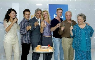 Imanol Arias, Ana Duato, María Galiana, Juan Echanove y otros protagonistas de "Cuéntame cómo pasó", la serie más vista de TVE, festejaron hoy, con cava y tarta, en Madrid, el décimo cumpleaños de emisión de la serie que a partir de mañana comienza su 13 temporada.