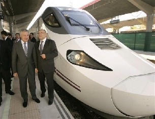 Galicia ha sido hoy el escenario de prueba del primer tren híbrido de alta velocidad del mundo, que combina tecnología de tracción diesel y eléctrica y puede circular por vías de ancho convencional e internacional, y que permitirá conectar Santiago con Madrid en menos de cinco horas desde mediados de 2012.