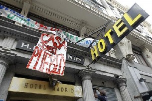 La empresa propietaria del Hotel Madrid, ocupado durante la protesta del 15-O, ha presentado una denuncia por estos hechos ante la Policía Nacional, según han informado fuentes de la Jefatura Superior de Policía, que han detallado que este cuerpo no actuará hasta que no haya una resolución judicial.