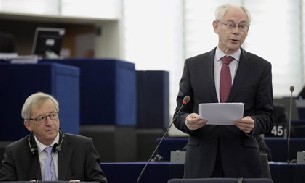El presidente del Consejo Europeo, Herman Van Rompuy, dijo que la UE debe preguntase si debe ir más allá en la disciplina fiscal e introducir sanciones más duras como suspender los derechos de votos, mutualizar de forma limitada la deuda o intervenir en los presupuestos nacionales.