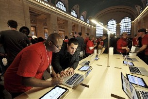 Algunas personas llegaron incluso a pasar la noche para ser los primeros en entrar en el comercio, que abrió sus puertas a las 10.00 hora local (15.00 GMT) entre los vítores del gentío, los trabajadores y cientos de entusiastas que tomaban sin parar fotos y vídeos con sus iPhones y iPads.